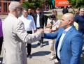 The first Deputy Prime Minister of North Macedonia, Artan Grubi speaking in a press conference during the presentation of the now border program with North Macedonia 'One Stop Shop'. The program aims to facilitate the border procedures for easier passage of people and goods between the two countries.