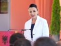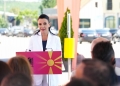 Deputy Prime Minister and Minister of Infrastructure and Energy, Belinda Balluku speaking in a press conference during the presentation of the now border program with North Macedonia 'One Stop Shop'. The program aims to facilitate the border procedures for easier passage of people and goods between the two countries.