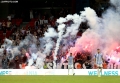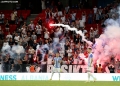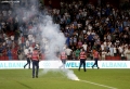 The fans of the Turkish team of Besiktas throw smokers onto the field, before the football match, Tirana - Besiktas (Besiktas), valid for the second round of eliminations for the UEFA group stage Conference League, played at Air Albania Stadium. The two fan groups collided before the start of the match, as they threw hard objects at each other, delaying the start by 14 minutes. They clashed even outside of the stadium and after the match.
