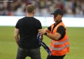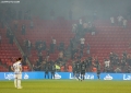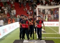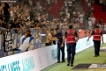 The police force on the field removing the smokers and trying to stop the fans from entering the field, before the football match, Tirana - Besiktas, valid for the second round of eliminations for the UEFA group stage Conference League, played at Air Albania Stadium. The two fan groups collided before the start of the match, as they threw hard objects at each other, delaying the start by 14 minutes. They clashed even outside of the stadium and after the match.