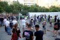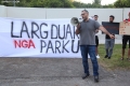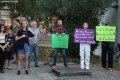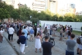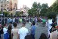 Members of the Joint Movement and citizens during a protest against the Tirana Mount project, whose works have begun behind the Palace of Culture. They have spoken against the destruction of the park.
