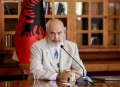 Albania's Prime Minister Edi Rama, speaks during a joint press conference with the Deputy Prime Minister and Minister of Infrastructure and Energy, Belinda Balluku, where he shared with the public the latest data he received from the inspection of oil exploration wells of the SHELL company in Shpirag. Rama declared that the quality of the oil found is of a high quality and that this important discovery will have a historical impact on the economic and social development, as well as on the geopolitical and geostrategic position of Albania.