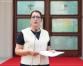 MINISTERS AFTER THE GOVERNMENT MEETING - Minister of Health and Social Protection, Ogerta Manastirliu speaks in front of the Prime Minister's office, after a government meeting, regarding the approved decisions.