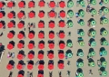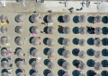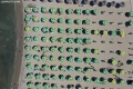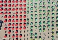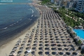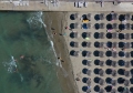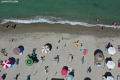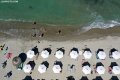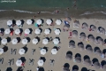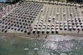 An aerial view of parasols and tourists sunbathing on the beach of Qerret in Kavaje. According to INSTAT, in the first 7 months of this year, Albania is visited by 5.1 million tourists. This number has increased by 30.6%, compared to the same period of 2022.