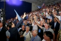 Chairman of the democratic party, Lulzim Basha and party members during the meeting of the National Assembly of DP, in the premises of the Sports Palace, Asllan Rusi. Members and MPs support Basha took part in the assembly. During the assembly, they voted for amendments in the party statute.