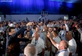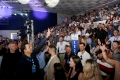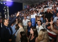 Chairman of the democratic party, Lulzim Basha greeting the participants during the meeting of the National Assembly of DP, in the premises of the Sports Palace, Asllan Rusi. Members and MPs support Basha took part in the assembly. During the assembly, they voted for amendments in the party statute.