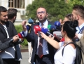 MP Gazment Bardhi speaking for journalists before entering a parliamentary session. This session marked the new parliamentary session, which is the fifth for the tenth legislature.Bardhi has ironized the DP assembly, where DP members who support Lulzim Basha have participated.