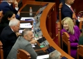 MPs Lulzim Basha and Gazment Bardhi during a parliamentary session. This session marked the new parliamentary session, which is the fifth for the tenth legislature.