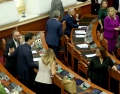 MP Albana Vokshi and Sali Berisha during a parliamentary session. This session marked the new parliamentary session, which is the fifth for the tenth legislature.