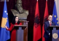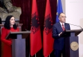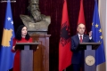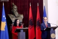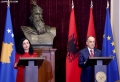 The President of the Republic of Albania, Bajram Begaj, and his Kosovar counterpart, Vjosa Osmani, speaking during a joint press conference in the premises of the Presidency. The two Presidents have spoken about the cooperation between the two countries and that there should be more coordination.