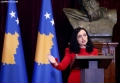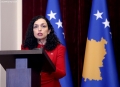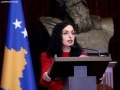 The President of Kosovo, Vjosa Osmani speaking during a joint press conference with the President of Albania, Bajram Begaj in the premises of the Presidency. The two Presidents have spoken about the cooperation between the two countries and that there should be more coordination.