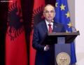 The President of Albania, Bajram Begaj, speaking during a joint press conference with the President of Kosovo, Vjosa Osmani in the premises of the Presidency. The two Presidents have spoken about the cooperation between the two countries and that there should be more coordination.