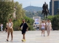 Banner with the image of Mother Teresa on the facade of the Polytechnic University of Tirana placed on the occasion of Mother Teresa's Saint's Day.