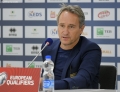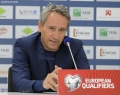 The coach of the Kosovo national football team, Primoz Gliha, speaks at a press conference before the football match, Kosovo vs Switzerland, valid for the qualifiers for the European Germany 2024.