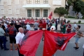 The fans of the Albanian national football team protesting in front of the Prime Minister's office for the release of Dritan Goxhaj, before the Albania-Poland match, 2-0, valid for the qualifiers for the European Germany 2024, played at the Air Albania stadium in Tirana.