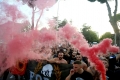 The fans of the Albanian national football team marching towards the stadium with smokers in their hands before the Albania-Poland match, 2-0, valid for the qualifiers for the European Germany 2024, played at the Air Albania stadium in Tirana.
