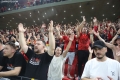 The fans of the Albanian national football team singing before the Albania-Poland match, 2-0, valid for the qualifiers for the European Germany 2024, played at the Air Albania stadium in Tirana.