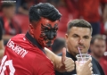 FANS BEFORE THE MATCH - A fan of the Albanian national football team, with the Albanian flag painted before the Albania vs Poland match, 2-0, valid for the qualifiers for the European Germany 2024, played at the Air Albania stadium in Tirana.