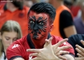 A fan of the Albanian national football team, with the Albanian flag painted before the Albania vs Poland match, 2-0, valid for the qualifiers for the European Germany 2024, played at the Air Albania stadium in Tirana.