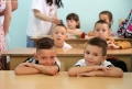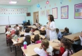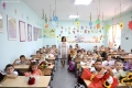FIRST DAY OF SCHOOL - A teacher introducing herself to elementary school children, on the first day of the new school year, for elementary and middle school students, at Vasil Shanto school, in Tirana.
