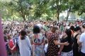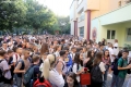 Parents accompanying their children on the first day of the new school year, for elementary and middle school students, at Vasil Shanto school, in Tirana.