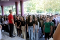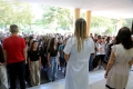Teachers waiting for elementary school children on the first day of the new school year, for elementary and middle school students, at Vasil Shanto school, in Tirana.