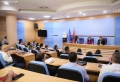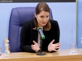 The new Minister of Education and Sports, Ogerta Manastirliu, speaking during a press conference where the transfer of duties from Evis Kushi to Manastirliu was announced. Manastirliu now leaves the position of Minister of Health and Social Welfare, which was passed to Albana Kociu.
