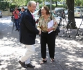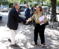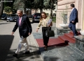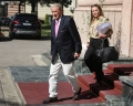 Former Prime Minister Sali Berisha and Albana Vokshi coming out of the headquarters of the parliament, where a meeting was held with the opposition MPs. The members of the groups that support Sali Berisha and Gazment Bardhi took part. Lulzim Basha and the Mps who support him boycotted the meeting.