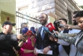 MP Gazment Bardhi speaking to journalists after coming out of the headquarters of the parliament, where a meeting was held with the opposition MPs. The members of the groups that support Sali Berisha and Gazment Bardhi took part. Lulzim Basha and the Mps who support him boycotted the meeting.