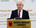 Head of the Albanian Academy of Sciences, Skender Gjinushi speaking during the 7th scientific conference in the framework of the Berlin Process, held in Tirana. This conference is held one month before the organization of the 9th Summit of the Western Balkans in Tirana.