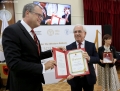 Head of the Albanian Academy of Sciences, Skender Gjinushi and Gabriel H. Haug during the presentation of the Honorary Member of the Academy of Sciences award during the 7th scientific conference in the framework of the Berlin Process, held in Tirana. This conference is held one month before the organization of the 9th Summit of the Western Balkans in Tirana.