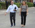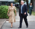 MPs Isuf Celaj and Albana Vokshi entering the parliament building for a parliamentary session. The draft for private pensions is expected to be discussed during the parliament.