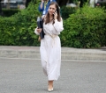 MP Dhurata Cupi entering the parliament building for a parliamentary session. The draft for private pensions is expected to be discussed during the parliament.