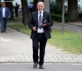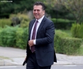 MP Bujar Leskaj entering the parliament building for a parliamentary session. The draft for private pensions is expected to be discussed during the parliament.