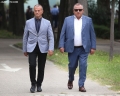 MPs Bujar Cela and Ismet Beqiraj entering the parliament building for a parliamentary session. The draft for private pensions is expected to be discussed during the parliament.