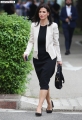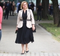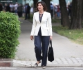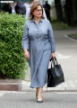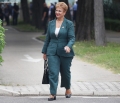 MP Jorida Tabaku entering the parliament building for a parliamentary session. The draft for private pensions is expected to be discussed during the parliament.