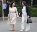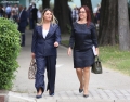 MINISTERS AND MPS OUTSIDE THE PARLIAMENT - MPs Orjola Pampuri, Andia Ulliri and Eralda Bano entering the parliament building for a parliamentary session. The draft for private pensions is expected to be discussed during the parliament.