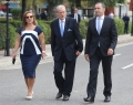 MPs Sali Berisha, Albana Vokshi and Isuf Celaj entering the parliament building for a parliamentary session. The draft for private pensions is expected to be discussed during the parliament.