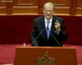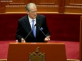 MP Sali Berisha during a parliamentary session, in which the draft for private pensions was discussed and approved. During the session, Prime Minister Edi Rama was absent.