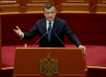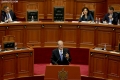 MP Sali Berisha speaking during a parliamentary session, in which the draft for private pensions was discussed and approved. During the session, Prime Minister Edi Rama was absent.