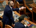 MP Agron Gjekmarkaj speaking during a parliamentary session, in which the draft for private pensions was discussed and approved. During the session, Prime Minister Edi Rama was absent.