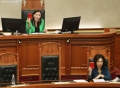 The Deputy Speaker of the Parliament, Ermonela Felaj and the Minister of State for Relations with the Parliament, Elisa Spiropali voting during a parliamentary session, in which the draft for private pensions was discussed and approved. During the session, Prime Minister Edi Rama was absent.