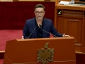 MP Gazmment Bardhi speaking during a parliamentary session, in which the draft for private pensions was discussed and approved. During the session, Prime Minister Edi Rama was absent.