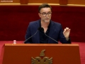 MP Erion Brace speaking during a parliamentary session, in which the draft for private pensions was discussed and approved. During the session, Prime Minister Edi Rama was absent.