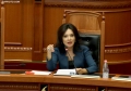 The Minister of State for Relations with the Parliament, Elisa Spiropali speaking during a parliamentary session, in which the draft for private pensions was discussed and approved. During the session, Prime Minister Edi Rama was absent.