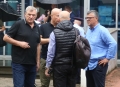 MP Agron Duka and Leonard Koka outside the premises of the Special Court for Corruption and Organized Crime, after in the latter session the sentence was given to Lefter Koken and Alqi Bllakon in connection with the Fier incinerator affair. The former Minister of Environment Lefter Koka will serve 6 years and 8 months in prison, while the former General Secretary in the Ministry of Environment Alqi Blako will serve 2 years and 8 months in prison.