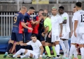 A moment of tension during the football match Vllaznia vs Egnatia, 0-2, valid for the Albanian Super Leage, played at the Loro Borici stadium in Shkoder.