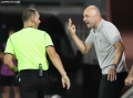 Referee Klodian Shahini and coach of Vllaznia, Migen Memelli during the football match Vllaznia vs Egnatia, 0-2, valid for the Albanian Super Leage, played at the Loro Borici stadium in Shkoder.