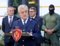 The General Director of the State Police, Muhamet Rrumbullaku speaking during a press conference where the result of the operation Never Forget. After the operation, Artan Tafani, a member of Laert Haxhiut's gang, was also arrested. The Police Director said that this mega-operation was finalized in full investigative secrecy, where the data is kept in full confidentiality.