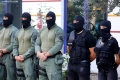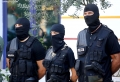 Special police forces during a press conference of the state police and the prosecutor's office of Elbasan, where the result of the Never Forget operation was announced. After the operation, Artan Tafani, a member of Laert Haxhiut's gang, was also arrested. The Police Director said that this mega-operation was finalized in full investigative secrecy, where the data is kept in full confidentiality.